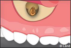 Il faut localiser le bout de la racine de la dent atteinte, procéder au décollement de la lésion avec une curette à bords tranchants, couper et enlever la partie de racine infectée.